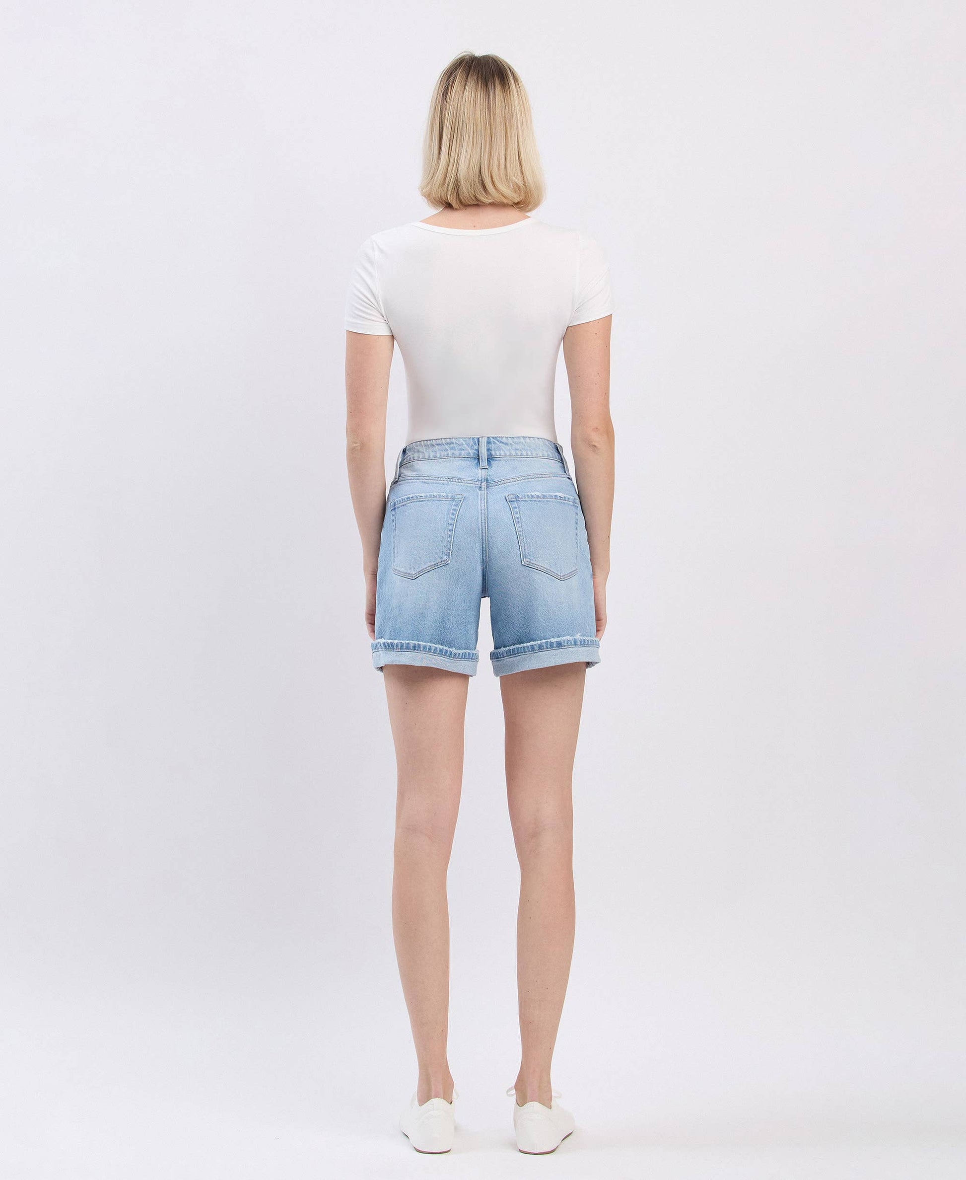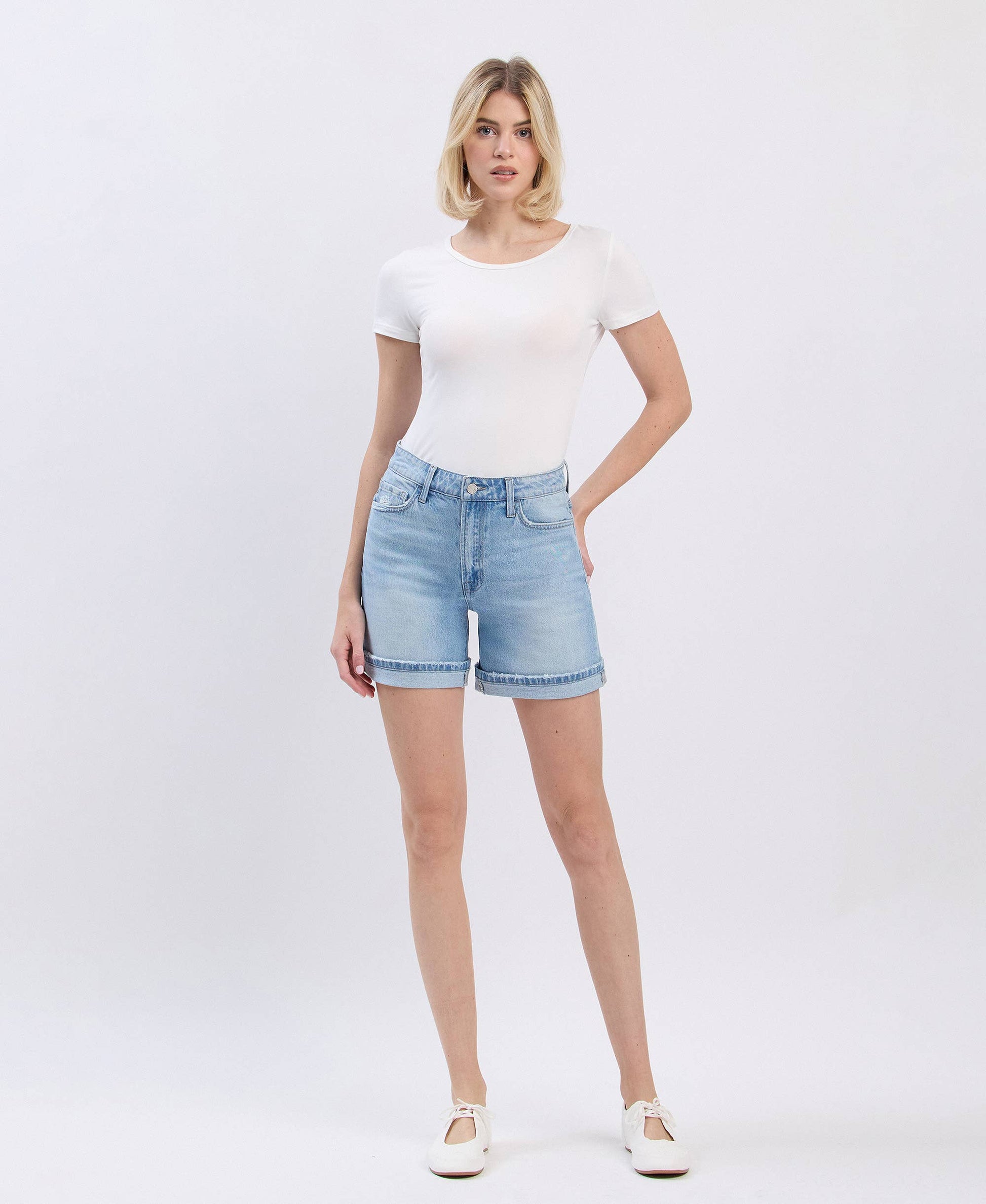 SUPER HIGH RISE MIDI DENIM SHORTS